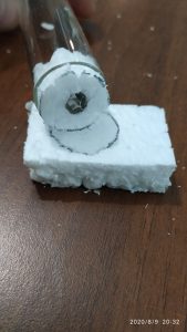- Si riempie 1/2 della provetta con acqua come in ogni setup standard.